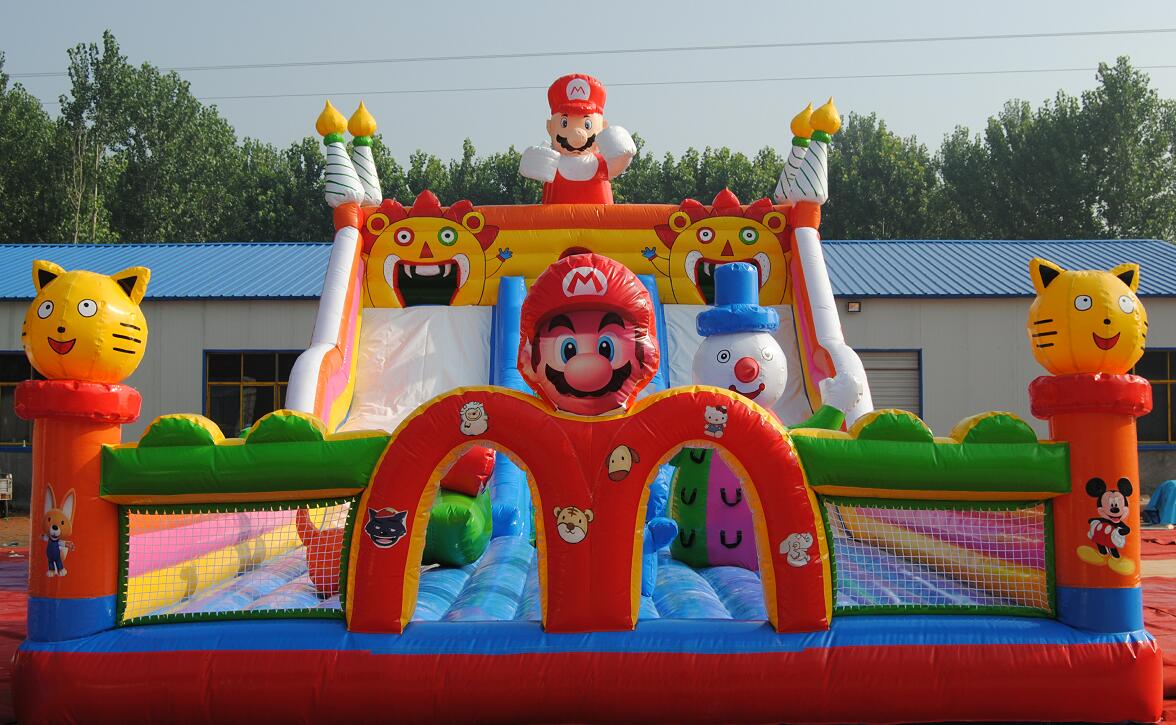 超级玛丽是我们这代人的回想,不少人都玩过超级玛丽这个游戏。虽说现在的小朋友对这个超级玛丽知道的不多了。但是他可爱的外型仍能吸收不少小朋友,超级玛丽这款充气城堡充气滑梯也是很受人欢迎的!